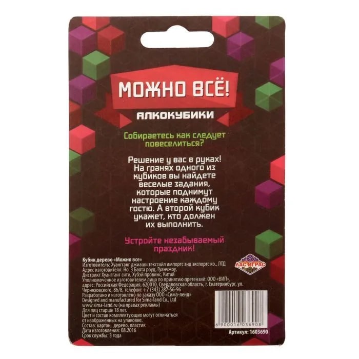 Купить кубик "можно все", алкокубики для принятия решений от 60 руб. с доставкой до пункта выдачи в Уфе. Интернет магазин ДекаМаркет. Оплата при получении.